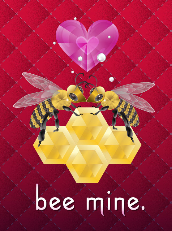 Bees made from glittering jewels delicately adorn this journal cover and valentine cards.