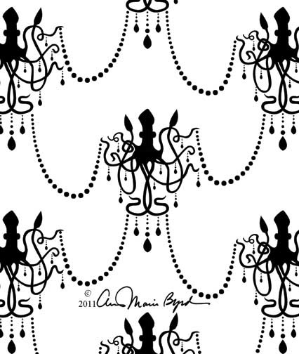 An unusual form creates a beautifully draped chandelier. Shown as possible applications for interior textiles.